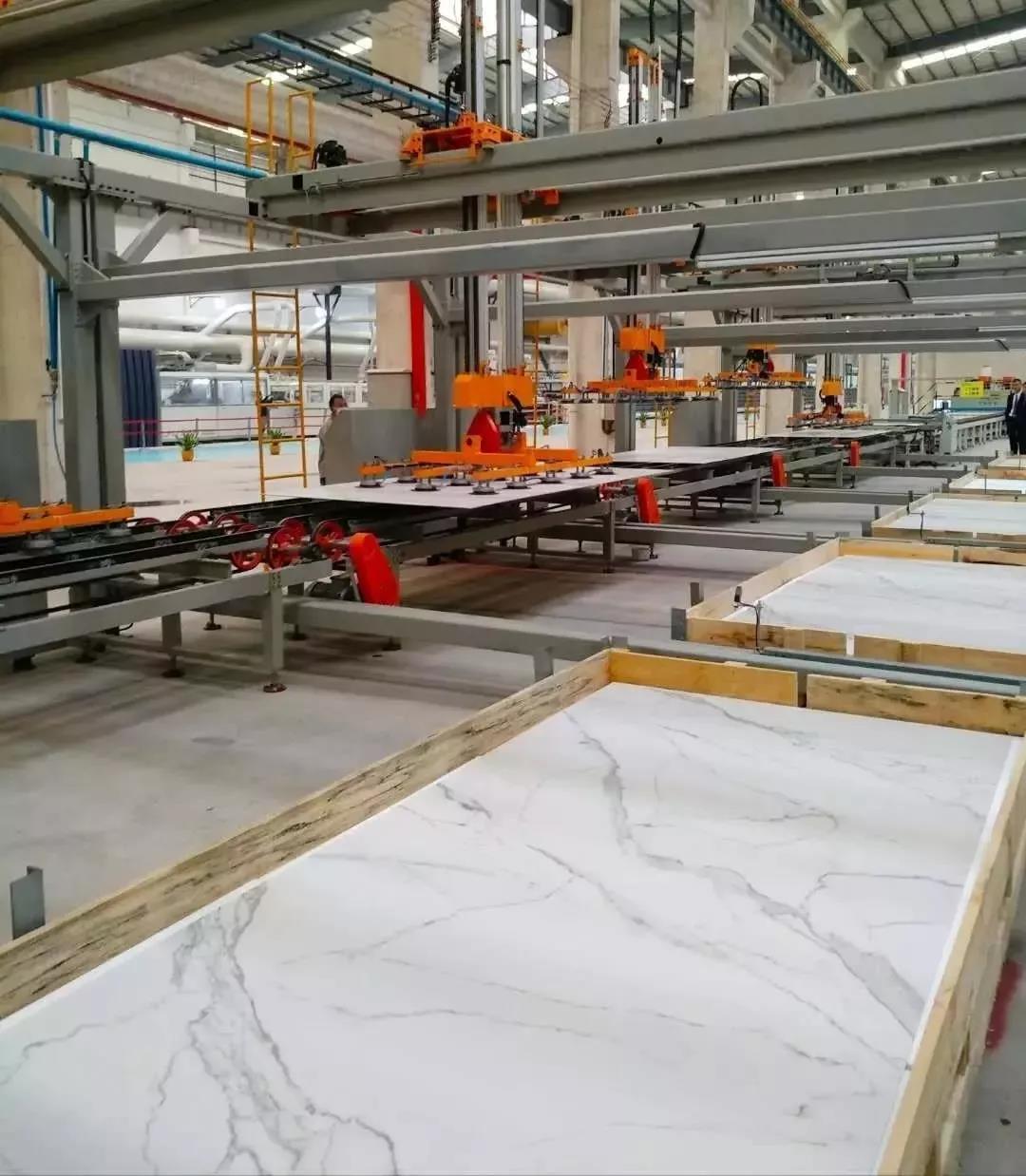 從巖板的生產制造來看,目前,既有全套引進的意大利陶瓷大板(巖板)生產線,也有自主研發的國產陶瓷大板(巖板)生產線,尤其是恒力泰36000噸壓機的投產,使國產巖板生產線成為現實。相信未來選擇國產裝備的巖板生產線會越來越多。與此同時,相應的寬體窯爐、釉線、噴墨打印機、拋光機、包裝機、自動碼垛機等,都已配套成熟,基本上能夠像瓷磚生產一樣,實現全過程的自動化,而非像某些人擔心的,一片巖板需要幾個員工抬著打包、入庫。