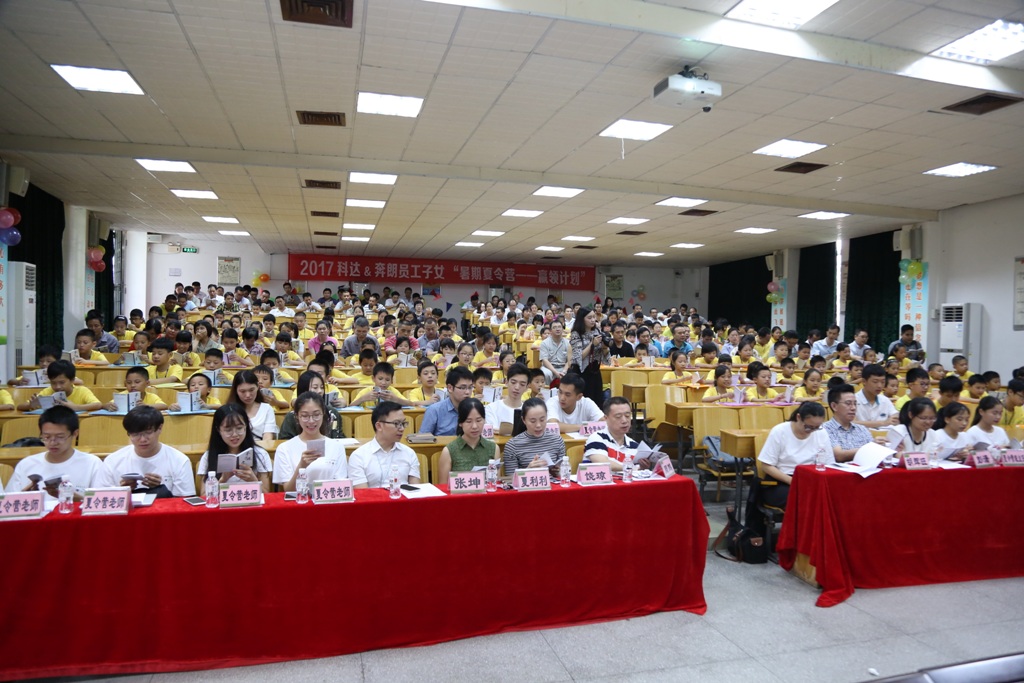 一陣朗朗的讀書聲,回蕩在美好的夏日高空。7月24日,科達潔能2017年“暑期夏令營——贏領計劃”分別在廣東基地(今年廣東基地夏令營活動設在陳村職校進行)與安徽基地同時開營??七_潔能副總裁周鵬,人力資源總監蘇順兵、董辦主任兼人力資源部經理饒瓊及奔朗公司副總經理胡輝旺,東西方文化培訓中心負責人關琪等領導、夏令營老師、員工子女和家屬300余人出席開營儀式。廣東基地139名(含奔朗公司)、安徽基地23名共162名員工子女相聚科達,將一同度過一個難忘而有意義的暑期。