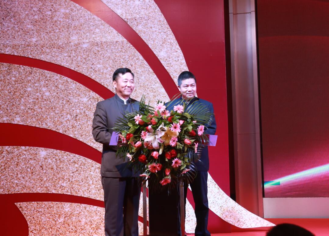 文藝表演開始前,晚宴由公司營銷總監鐘琳和國際營銷總監劉曉東中英雙語聯袂主持,為了表達對過往一年支持科達的國內外客戶的誠摯謝意,科達向國內前39名和海外前19名大客戶頒發了金色KD16008壓機,寓意大吉大利、昂首前行的祝愿。鐘總和劉總在致辭中表示,正如今年的展會主題“邁進大板時代,引領智慧整線”一樣,科達會不負時代使命,繼續引領行業創新,與各位攜手一起開創大時代!