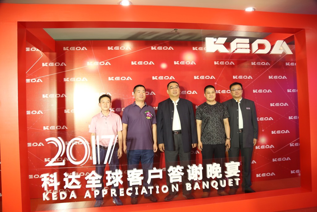 公司董事長邊程,總裁吳木海攜公司領導團隊向客戶祝酒致謝,吳總致祝酒詞:“今年恰逢科達成立25周年,25年來,科達秉持特有的創新基因,一直努力為做好整線陶瓷機械裝備不懈努力,今天在展會現場我們看到了類似數字磨邊機、T-BOX儲坯系統、還有3D打印機等非常多的亮點,今后我們仍然會堅持不懈創新,繼續努力做精做強,助力陶瓷行業的轉型升級,大家共同為陶瓷行業的再次騰飛舉杯!”