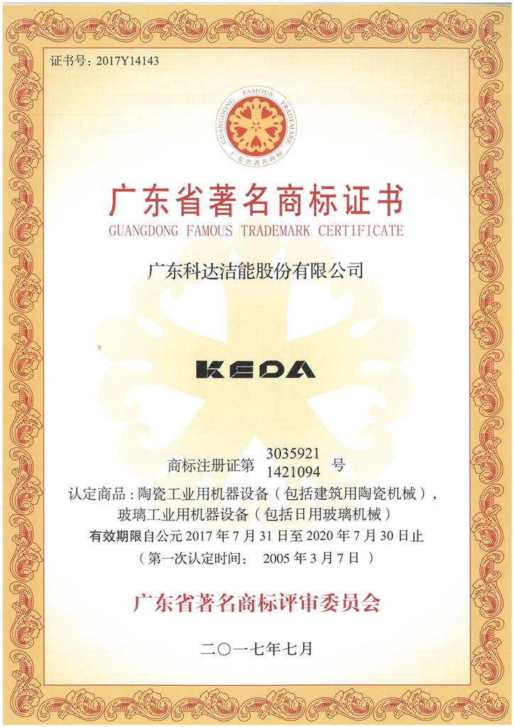 7月31日,廣東省著名商標(biāo)評審委員會發(fā)布了《2016年度廣東省著名商標(biāo)認(rèn)定和延續(xù)公告》,近日,科達(dá)潔能收到廣東著名商標(biāo)證書相關(guān)文件, “KEDA”品牌商標(biāo)成功獲得延續(xù)認(rèn)定,有效期限自2017年7月31日至2020年7月30日止。