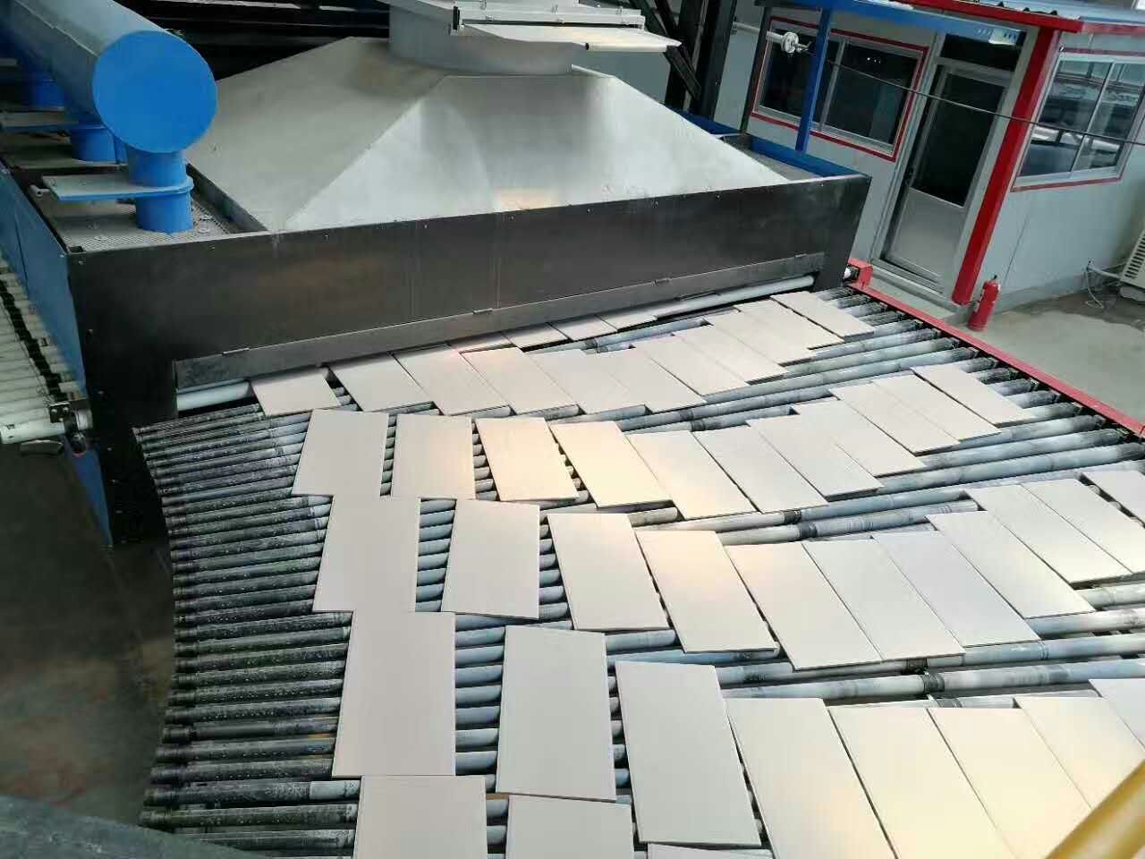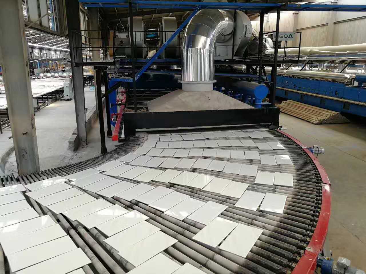 今年年初,由科達承建的行業首條3.85米寬窯爐在臨沂金昌成功投產,其素燒窯為3.85米寬,釉燒窯爐為3.45米寬,此次在泰安俊尚投產的窯爐釉燒走11片對走磚和斷面溫差提出了很大的挑戰,如果走磚和溫差控制不好,將直接影響到產品的色差、磚型和整體效果。為了應對這一挑戰,科達在這條窯爐全窯配置了高標準的輥棒,不管是在強度方面還是在尺寸公差上都有了很大的提升,因而保證了走磚效果。同時,由于窯爐加寬,為了更好的控制窯內的壓力,讓溫度處理和氣流更加平穩均勻,在窯爐的燃燒系統,科達對擋火墻和擋火板的布置和結構做了特殊設計。