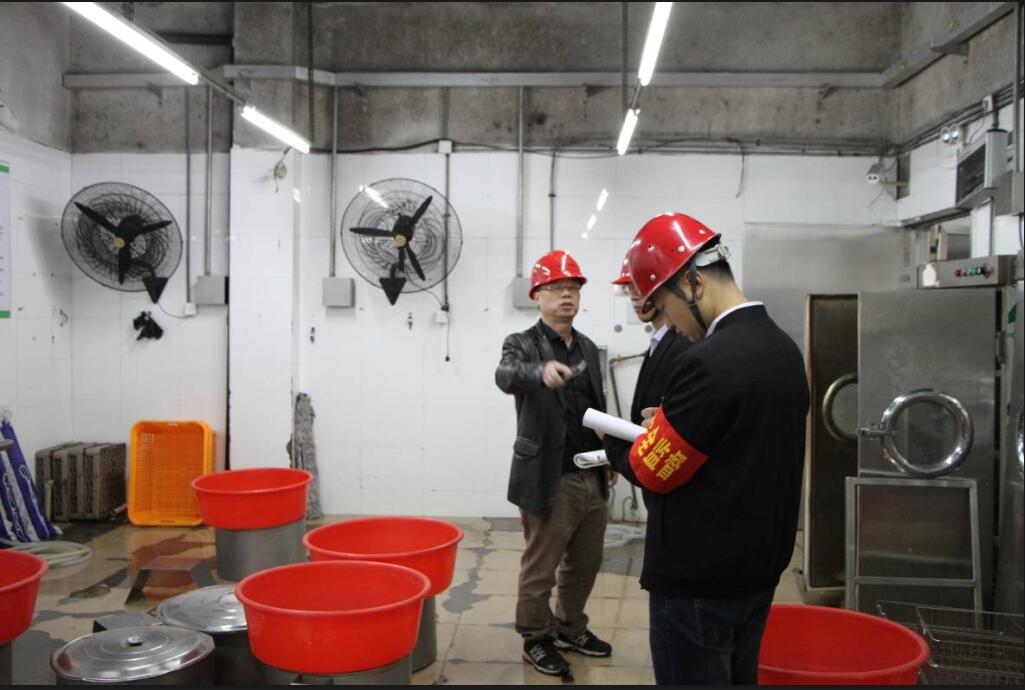 在員工飯堂后廚,周總要求后勤服務中心要做好菜蔬烹飪衛生、食品安全和地面防滑措施
