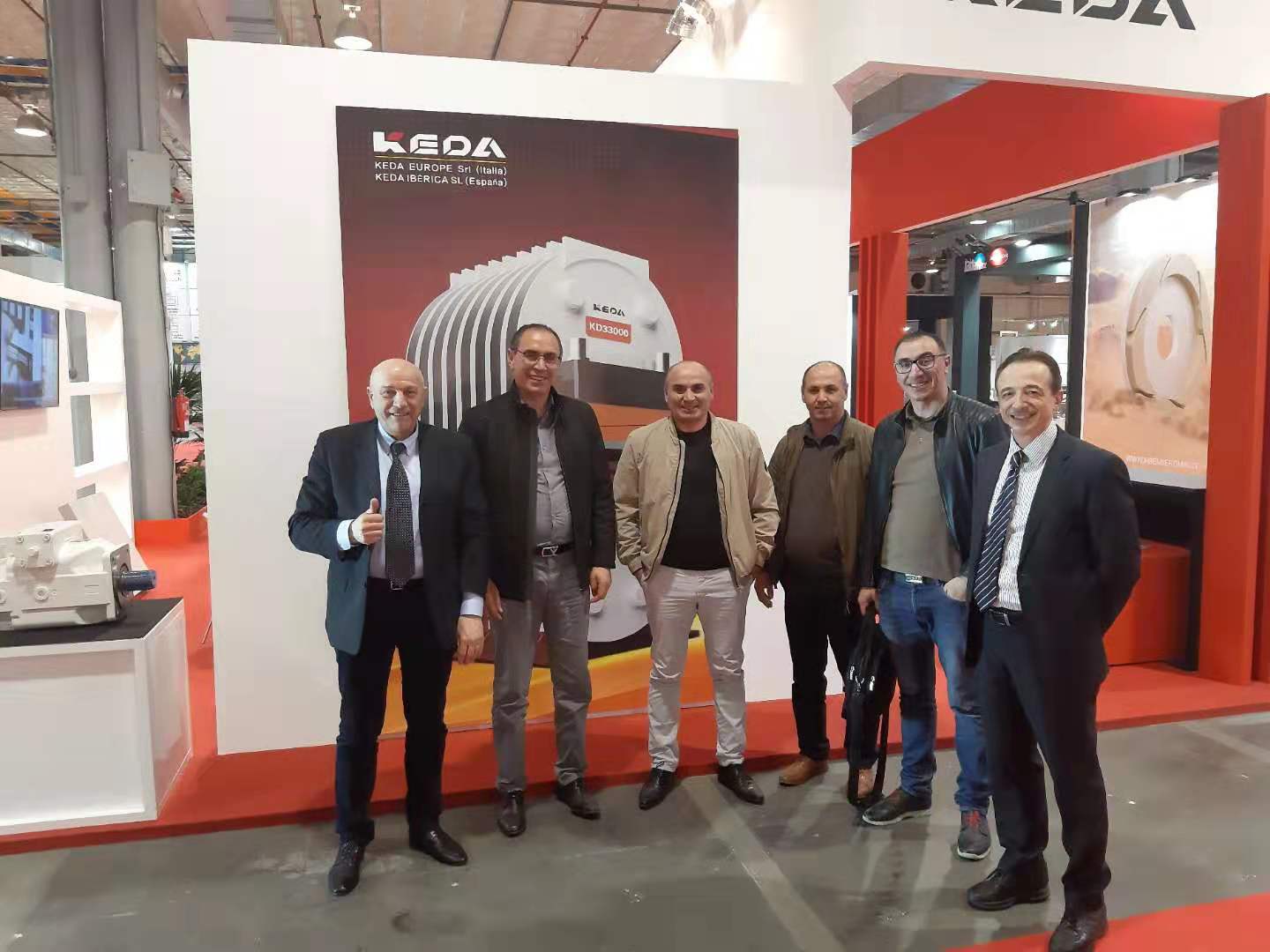 來自阿爾及利亞、土耳其、伊拉克、巴基斯坦等國家的老客戶紛紛到科達展位了解科達最新產(chǎn)品,他們很高興看到科達歐洲的存在,并期望未來科達能夠就近為其提供更好的服務(wù)。來自歐洲的客戶則對科達的透水磚生產(chǎn)線表示了濃厚興趣,此外,前來科達展位洽談的一些西班牙客戶,則有意向購買新機型替換其原有的舊壓機,并計劃引進新的磨邊線。