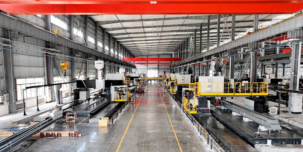 在佛山科達裝備的三號車間,近20臺全新的五面體龍門加工中心形成了華南地區獨樹一幟的龍門加工集群。其8~18米的超長加工長度、3~4米的加工寬度、約2米的立體加工高度,主要應用于機架類、橫梁類的大型結構件,包括大型鑄鍛件的加工。龍門加工中心具有剛性強、功率扭矩大、穩定性高的特點,且機床自帶高精度系統,加工精度精確到0.01mm,相當于發絲直徑的1/10。從切削到成型全程穩定輸出,確保工件尺寸公差完美達標。