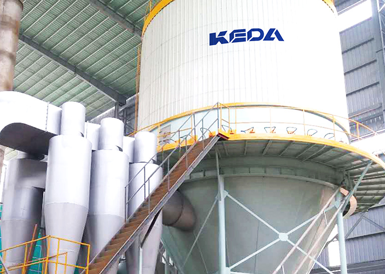 噴霧干燥塔采用物理方法對陶瓷原料進行脫水,是一種干壓法制坯的粉料干燥設備。單位能耗降耗 800Kcal/kg*H20。