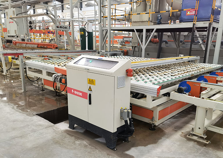 此設(shè)備是針對大規(guī)格、薄板產(chǎn)品根據(jù)拋光生產(chǎn)工藝要求配套的90°轉(zhuǎn)向設(shè)備。工作時,輸送輥同時下降,托板在導(dǎo)槽上平穩(wěn)旋轉(zhuǎn)90°,輸送輥同時升起,之后轉(zhuǎn)動輸送輥輸送到下一設(shè)備上。 本設(shè)備運(yùn)行平穩(wěn)、快捷,適用于大規(guī)格板材、薄板等的生產(chǎn)。