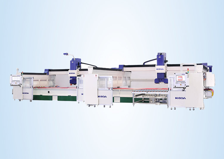 科達 CJ 系列大板切割分揀生產線最大加工工件規格可達 2000X3200mm,除了針對臺面板各 種形狀切割等傳統橋切功能外,還增加了 AI 對刀、自動貼標、吸盤移板等功能。通過該機配 套的智能排版軟件,可對板材以最大出材率自動優化、對紋排版或人工規劃 3 種方式進行預先 規劃切割方案,將方案導入到該機后一鍵進行自動切割,分揀機械手根據前一工序所貼標工藝, 通過系統集成數據,自動將工件分流到下一工藝生產流水線上,提高生產效率和工藝準確性。