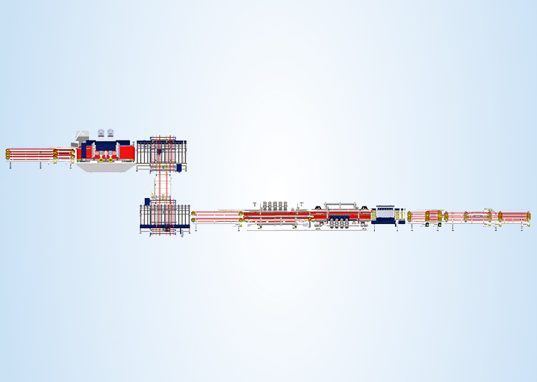 鋸斷分條生產線是一條窄條磚鋸切生產線。其適用于厚度為≤ 12mm 陶瓷墻、地磚切割加工。鋸 切方向與磚坯輸送方向平行,分條采用直接鋸斷方式。鋸斷分條生產線具有一分多、切割規格小的特點。