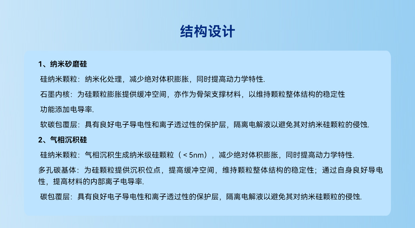 以多維度、多尺度的維納結構設計理念,采用業內領先的工藝與裝備技術,批量化生產高容量、低膨脹、長循環性納米硅復合負極材料